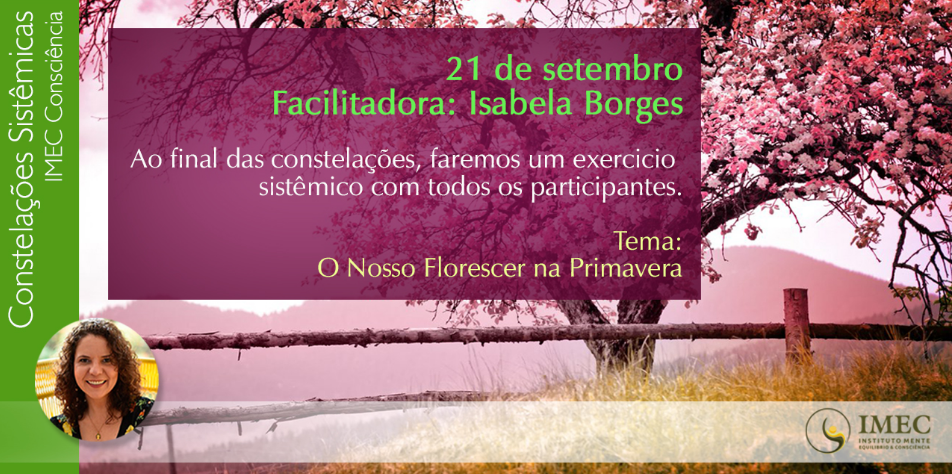 Então amanhã teremos um encontro muito especial de constelações sistêmicas do IMEC-Consciência em São Paulo, no Espaço Gaya, na véspera da primavera! Faremos um movimento sistêmico com todos os participantes sobre a chegada da primavera.